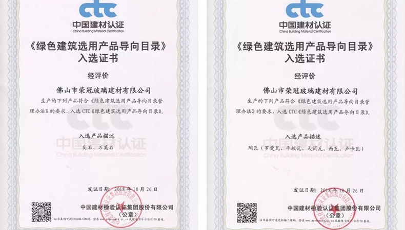 榮冠建材多項產品榮獲"綠色建筑選用產品",并入選"綠色...